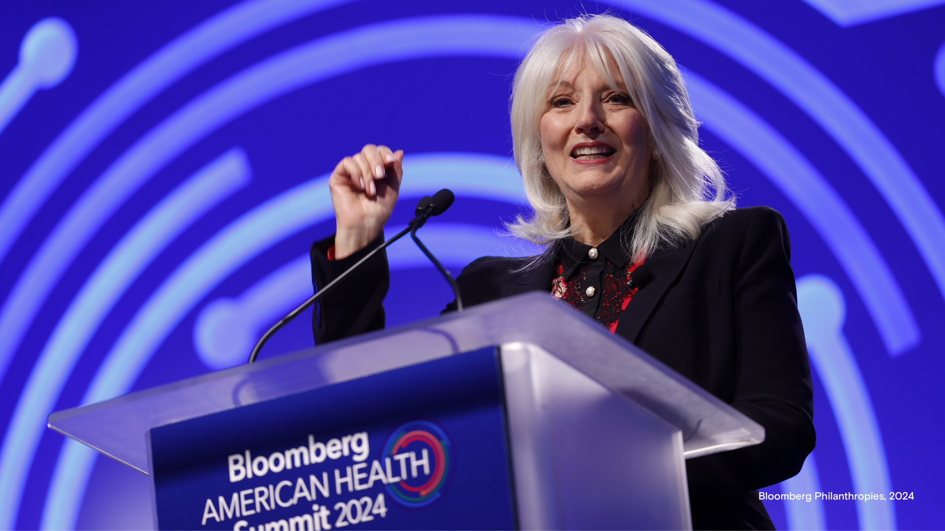Dec. 3: Photo of Cynthia Germanotta giving a keynote at the Bloomberg American Health Summit for the Adolescent Mental Health pillar, centered on young people’s leadership in reaching mental health solutions.