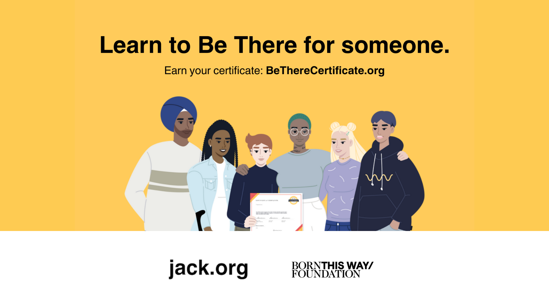 Mar. 9: Born This Way Foundation, in partnership with jack.org, launched the Be There Certificate, a free online course that teaches how to safely support someone who may be struggling with their mental health, available in English, French, + Spanish.
