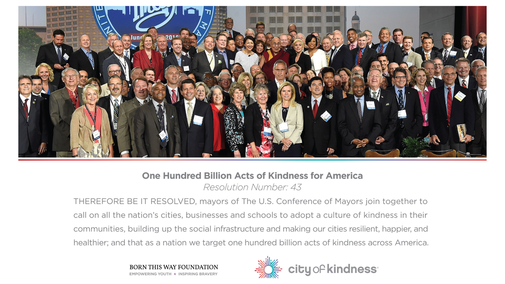 Announced the #CityofKindness movement, asking 300 mayors to join us in creating a kinder, braver world. Lady Gaga joined the Dalai Lama and the Random Acts of Kindness Foundation to discuss the power of kindness and compassion.